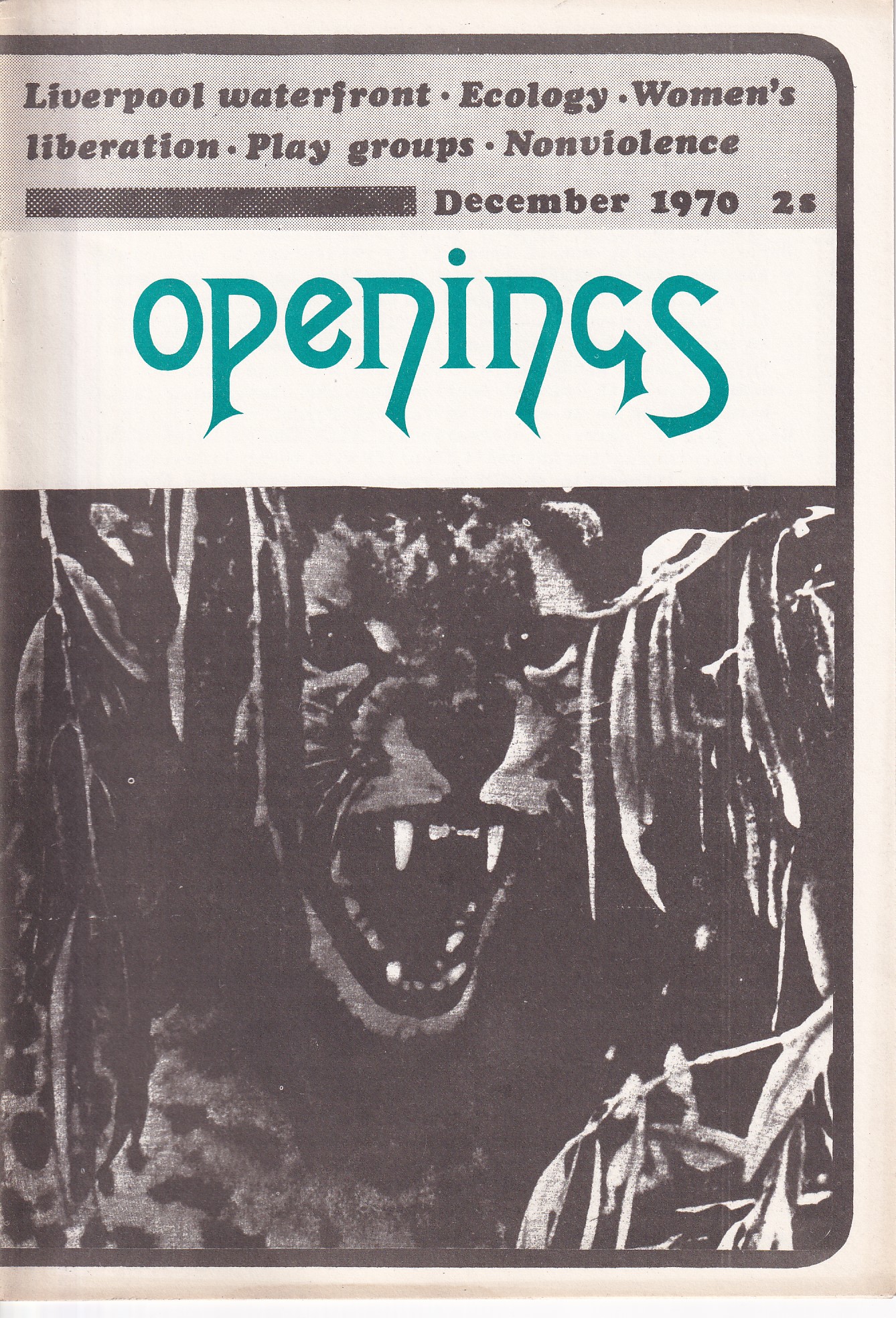 Openings magazine was an offshoot from Open Design which survived for only two issues. It didn't attract much attention at the time, though it was later extensively cited in a Leeds University PhD thesis about communes.